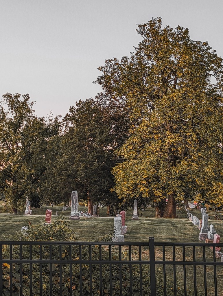 Nothing like a cemetery pic to mark the month of October! This was taken from my car in the local 7 Brew drive thru. ☕